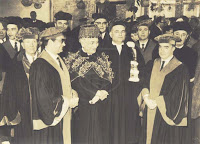 Fotografia ilustrativa da cerimónia de doutoramento honoris causa de Gilberto Freyre pela Universidade de Munster, no ano de 1968.